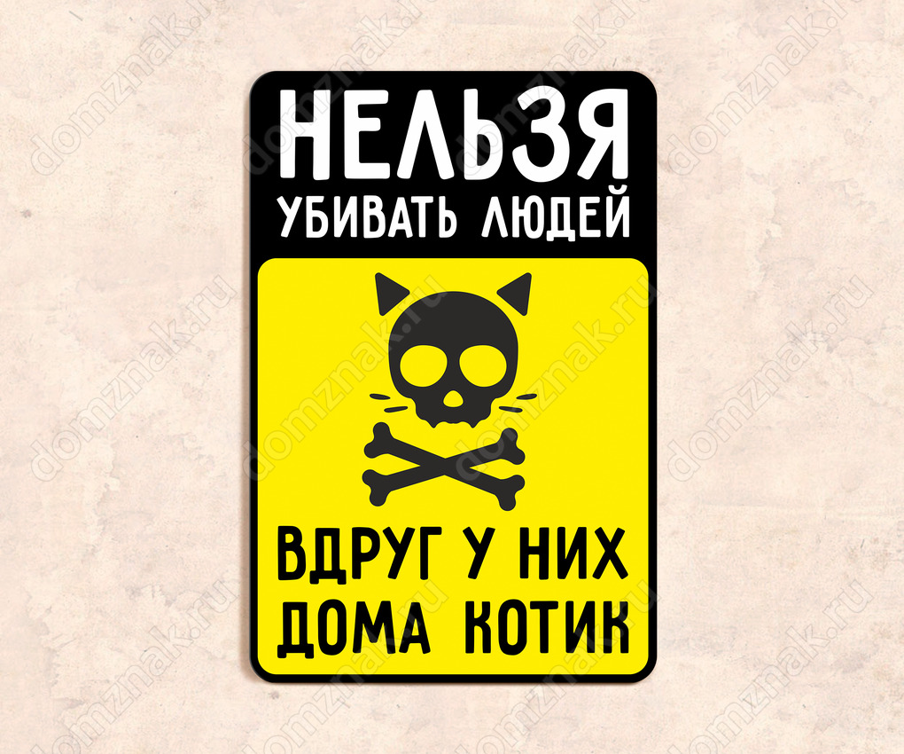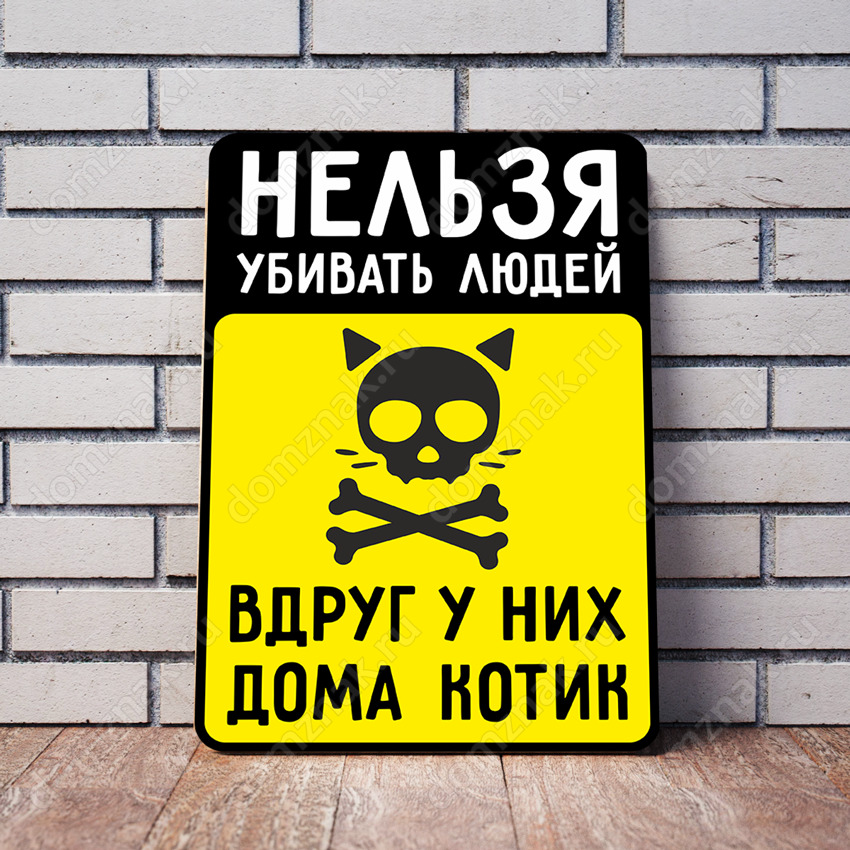 Табличка «Нельзя убивать людей вдруг у них котик»
