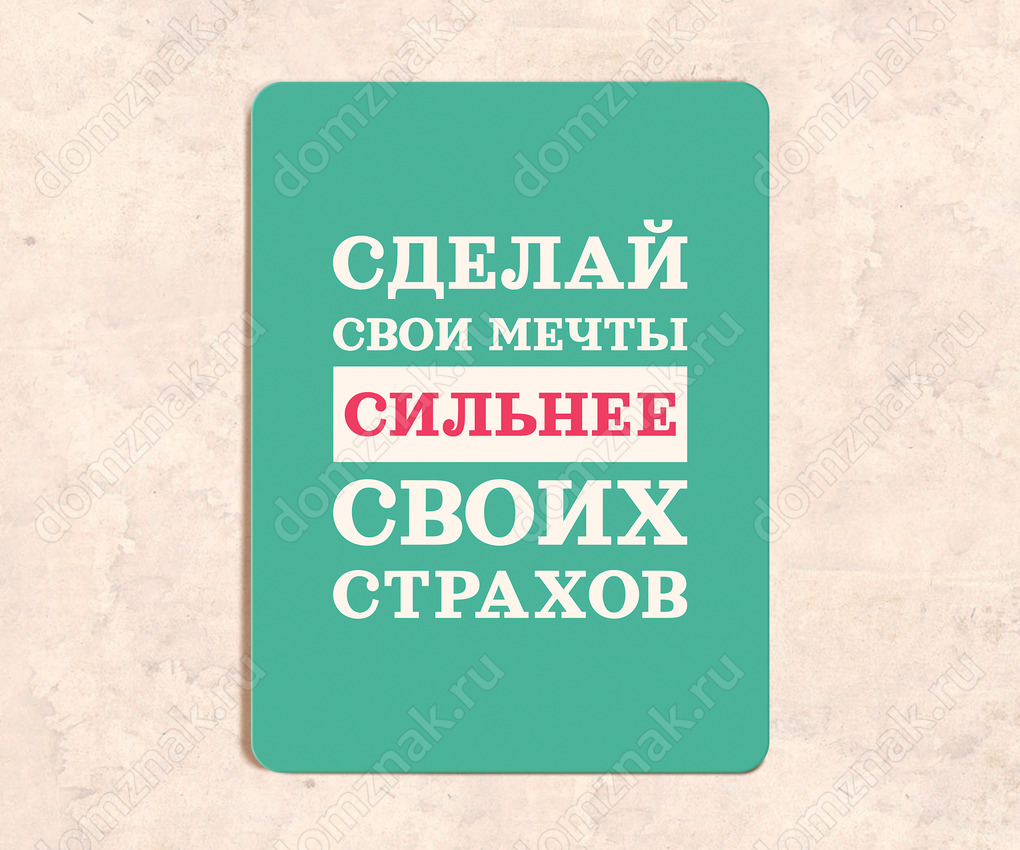 Табличка «Сделай свои мечты сильнее своих страхов»